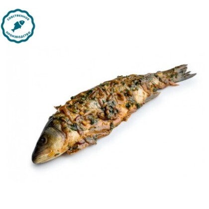 Состав: сибас чищеный, масло сливочное, вино сухое белое, сок лимона, перец розовый, гвоздика целая, соус ворчестер, тархун, соль морская.