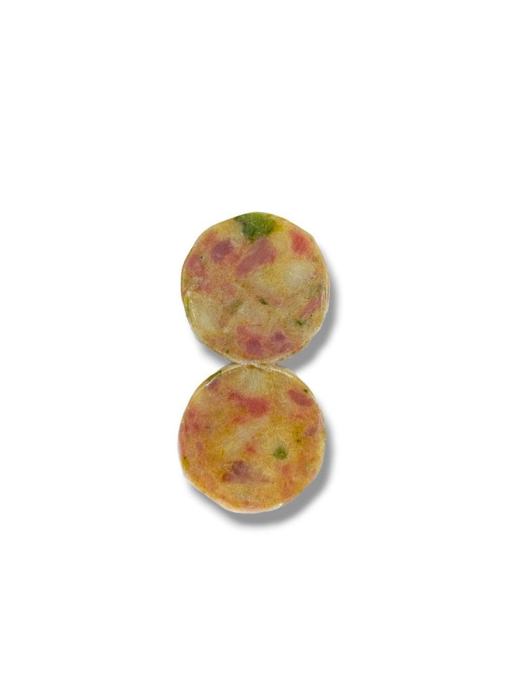 Состав: тунец желтоперый, треска атлантическая, брокколи, вода, масло подсолнечное рафинированное дезодорированное, яйцо, лук репчатый, соль, перец черный молотый