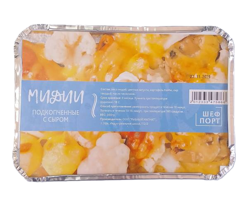 Способ приготовления: разморозить мидии в течение 10 минут, запекать в духовке при температуре 180°C в течение 13-15 минут.