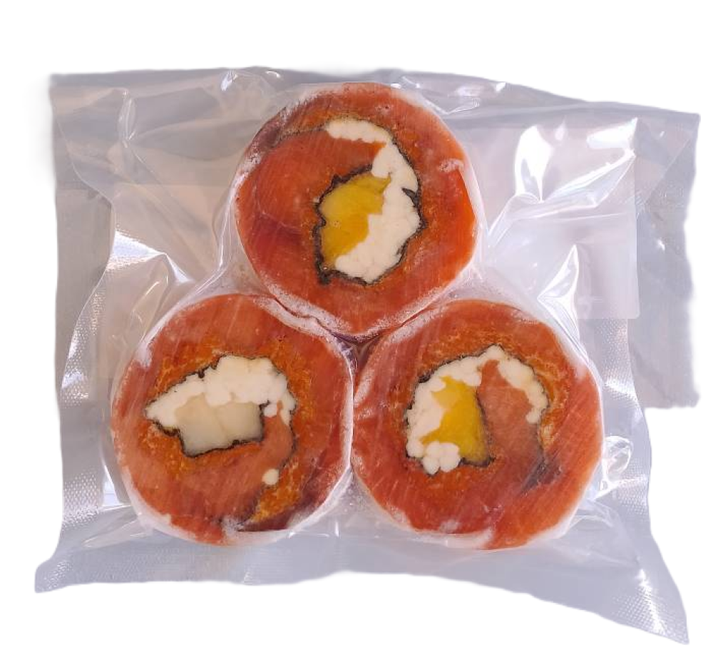 Рулет из кеты с моцареллой и ананасом