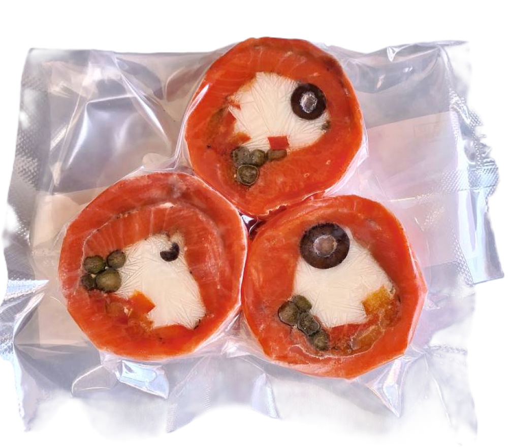 филе форели, сыр творожно-сливочный, маслины, спаржа, перец болгарский, смесь перцев, тимьян.