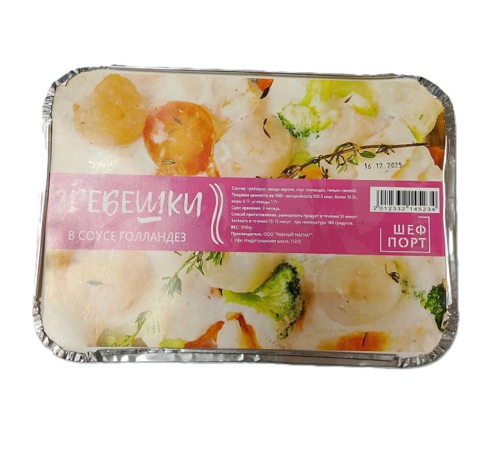 гребешки, овощи европейские, соус голландез, тимьян свежий.