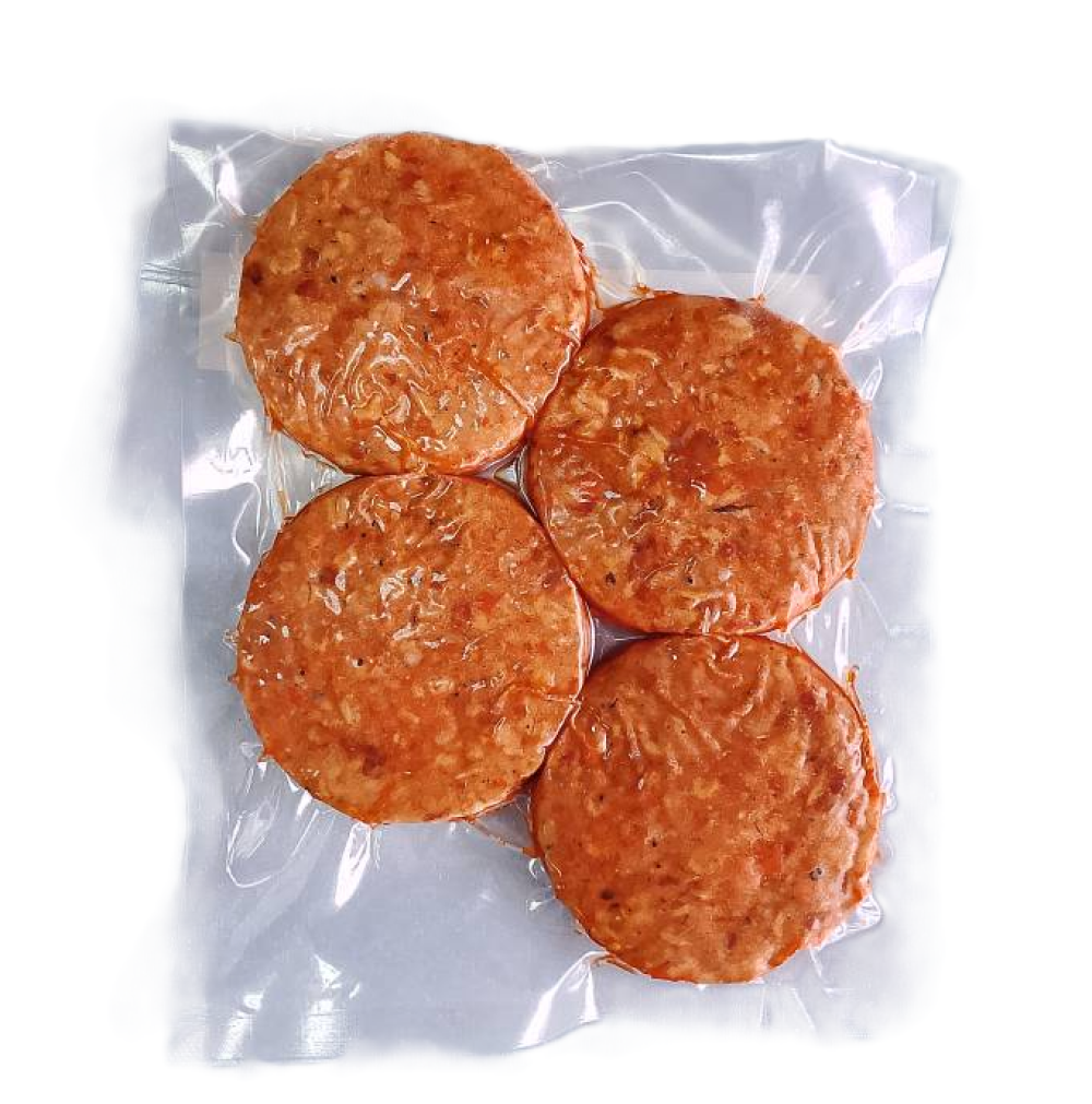 фарш из рыбы лососевых пород, вяленые томаты, базилик, овсяные хлопья, перец черный молотый.
